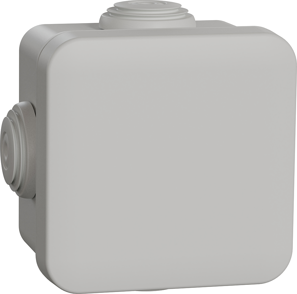 Mureva Box - boîte de dérivation en saillie - 65 x 65 x 45 mm - 4 passe-câbles Ø 20mm - couvercle clipsable - 5 pièces - gris RAL 7035 - IP55 IK07 - corps ABS | couvercle polypropylène | passe-câble SBS -650°C -CE -classe II -sans halogène